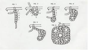1) Primero se ponen 12 puntos, mas 3 más para subir. (conviene la primera vuelta hacer toda la hilera de punto alto como tiene la muestra pues ayuda a mantener el tejido derecho, pero la explicacion se saltea ese paso)